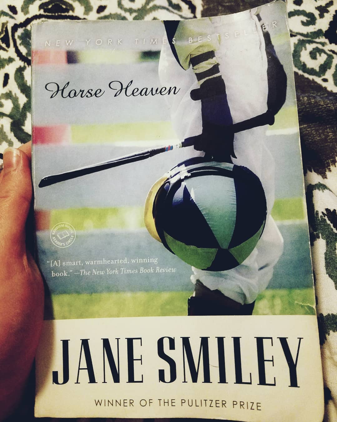There are some books that leave a lovely ache. Some books that reach into your bones and squeeze until you say “NO MORE” but you keep reading anyway. For me, Jane Smiley’s HORSE HEAVEN is one of those books. Smiley is a talented author who can write with that perfect level of fervent passion that is often either too much or not enough. Her level is the Goldilocks level – just right oh so matter of fact. She won the Pulitzer Prize for Fiction in 1992 for A THOUSAND ACRES, a book I read ages ago after the movie came out.