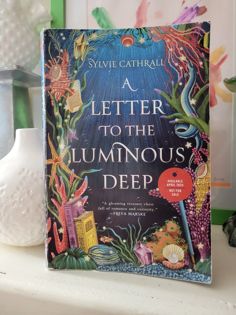 I’m going to start this review with a word of caution and a bit of grace. When I was halfway through the novel, I suffered a stroke. I read some parts in the hospital and finally finished. Perhaps that contributes to my overall feelings about Sylvie Cathrall’s A Letter to the Luminous Deep (4/23/24 Orbit); however, I did have some issues with the story pre-stroke. Take from that what you will.