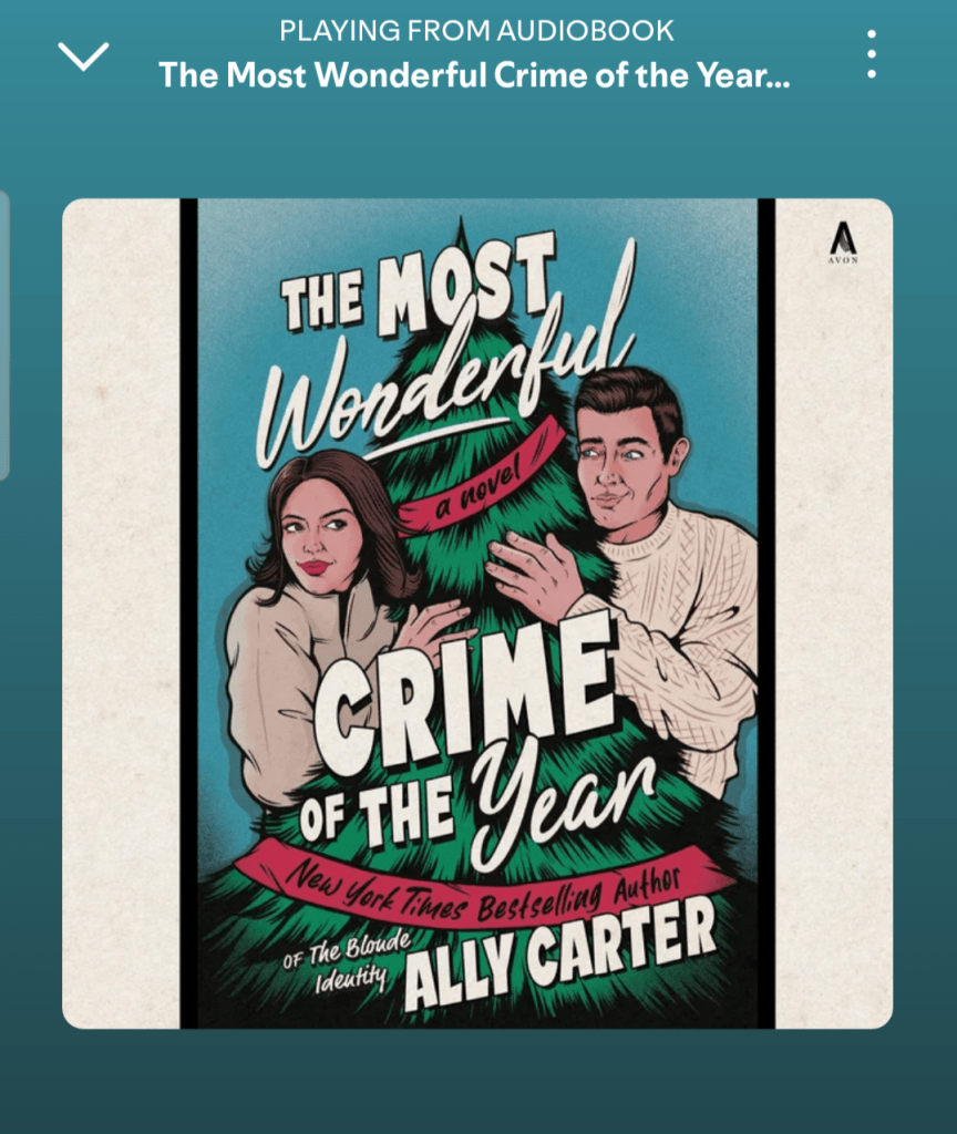 While heading home for Christmas, I decided to listen to an audio book. (I usually get one or two audio books in a year, but it’s really not my reading preference.) I settled on Ally Carter’s The Most Wonderful Crime of the Year (Avon 2024), and I’m so glad I did. What a delicious holiday candy book this was. And I mean delicious.